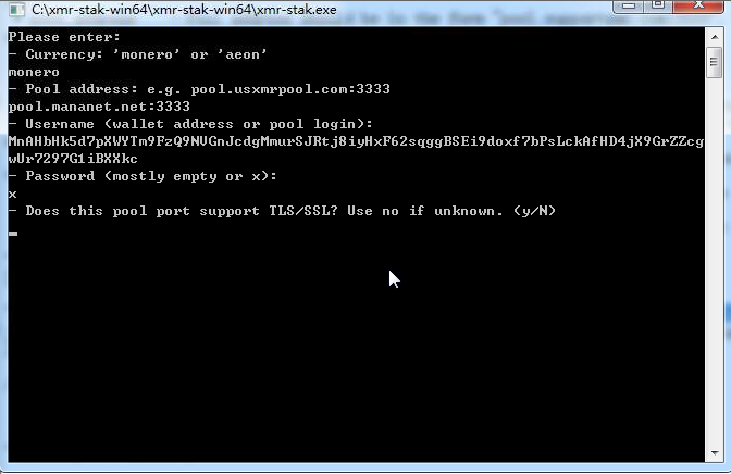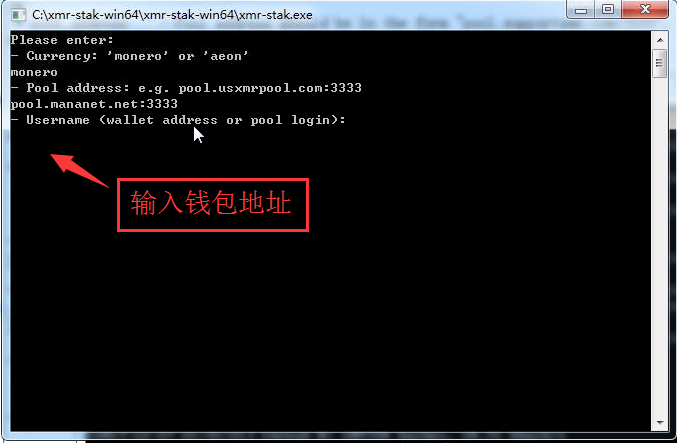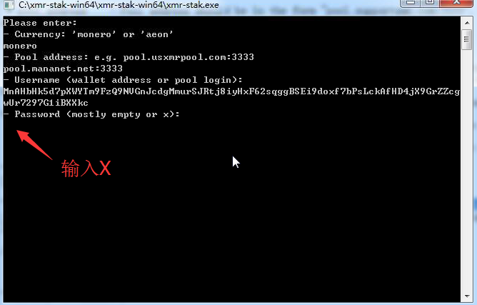 没搞懂这两项是什么意思,网友叫我输入:monero 然后回车;接下来的提示就是要你输入矿池地址和端口。
