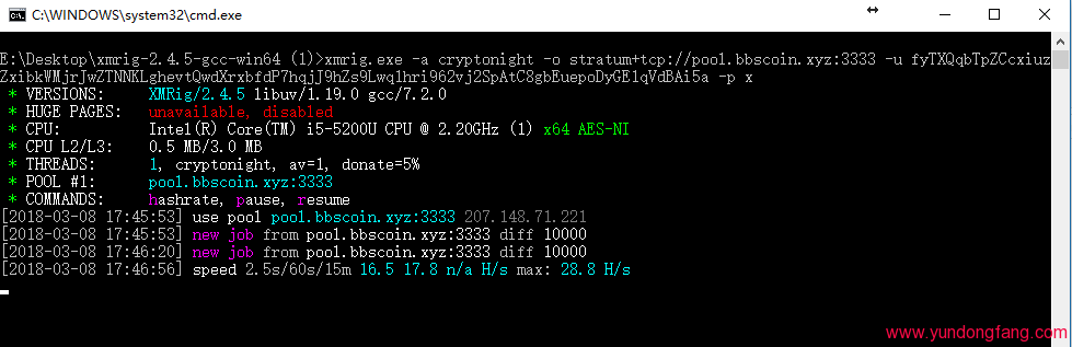 挖矿软件下载址:https://github.com/xmrig/xmrig/releases/download/v2.4.5/xmrig-2.4.5-gcc-win64.zip